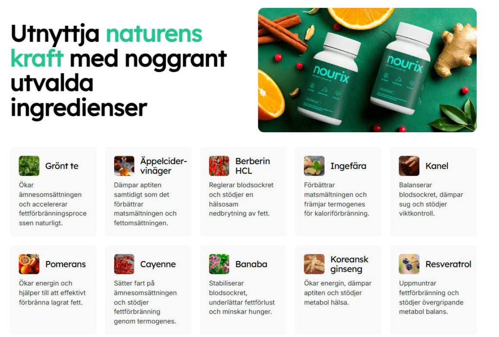 Nourix verkar genom att kombinera naturliga ingredienser som stödjer matsmältningen, ökar ämnesomsättningen och ger mer energi. Detta hjälper kroppen att bränna fett effektivare och främjar allmänt välbefinnande.